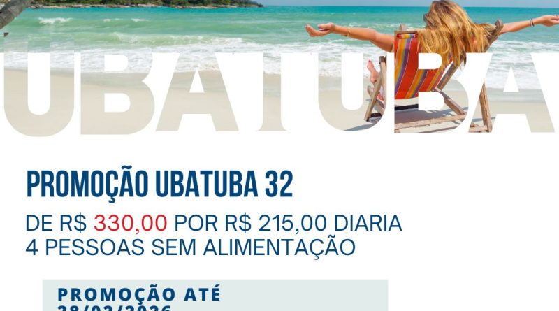 Aproveite a Promoção Ubatuba 32 com diária de R$ 215,00 para até 4 pessoas, em acomodação com cozinha mobiliada.