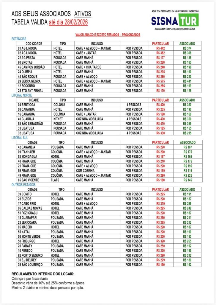 ⚠️ Sujeito à disponibilidade de vagas e datas (exceto feriados prolongados)